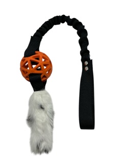 Träningsleksak Doris med gallerboll Ø7cm & äkta kaninskinn efter bollen.